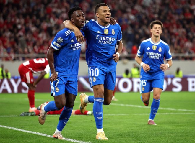 欧冠小组赛第五轮客场比赛,皇马以4-3击败奥林匹亚科斯队取得胜利。皇马在对阵身价只有1.1亿欧元的奥林匹亚科斯队的比赛中丢了三个球,这有点令人惊讶。不过,得益于姆巴佩的出色发挥,皇马轻松拿下比赛。皇马上一场对阵埃尔切的比赛比分是2-2。也就是说,皇马连续两场比赛总共丢了五个球,防守也很差。阿隆索迫切需要全面提升球队的防守,否则想要多条战线争夺冠军将非常困难。本场比赛,皇马凭借身价高达1.8亿欧元的姆巴佩的世界级表现挽回了败局。姆巴佩总共射门六次,其中四次射正,拿下四分。这意味着您检查了皇马进球的所有进球。这是姆巴佩首次攻入四粒进球他抵达皇家马德里后。事实上,皇马历史上四次夺得欧冠冠军的球员并不多。姆巴佩成为皇马历史上第四位四次夺得欧冠冠军的球员。另外三名球员是迪斯蒂法诺、普斯卡什和克里斯蒂亚诺·罗纳尔多。姆巴佩打进4球,直接导致欧冠进球榜发生重大变化。姆巴佩以九粒进球高居进球榜榜首。这也是姆巴佩职业生涯单场欧冠出场次数最多的一次。奥斯姆亨以 6 个进球排名第二。姆巴佩的两个非常强劲的对手哈兰德和凯恩本轮均未能进球,双双被姆巴佩淘汰。哈兰德本场欧冠比赛没有首发。直到第65分钟他才替补上场。最终他四次射门都没能射正,只能眼睁睁看着曼城输给勒沃库森。结果,他在本赛季的欧冠联赛中只打进了5个进球在。哈里·凯恩将参加本轮欧冠小组赛。-我和我的球队一起远征,挑战塞纳尔。结果,这是他们本赛季最差的一场零射门比赛,拜仁也输给了阿森纳。哈里·凯恩在欧冠联赛中只打进5球,与哈兰德持平。